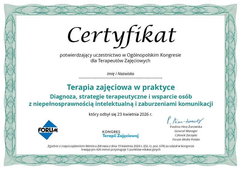 Za udział w Kongresie dla Terapeutów Zajęciowych otrzymasz nawet 25 punktów edukacyjnych!